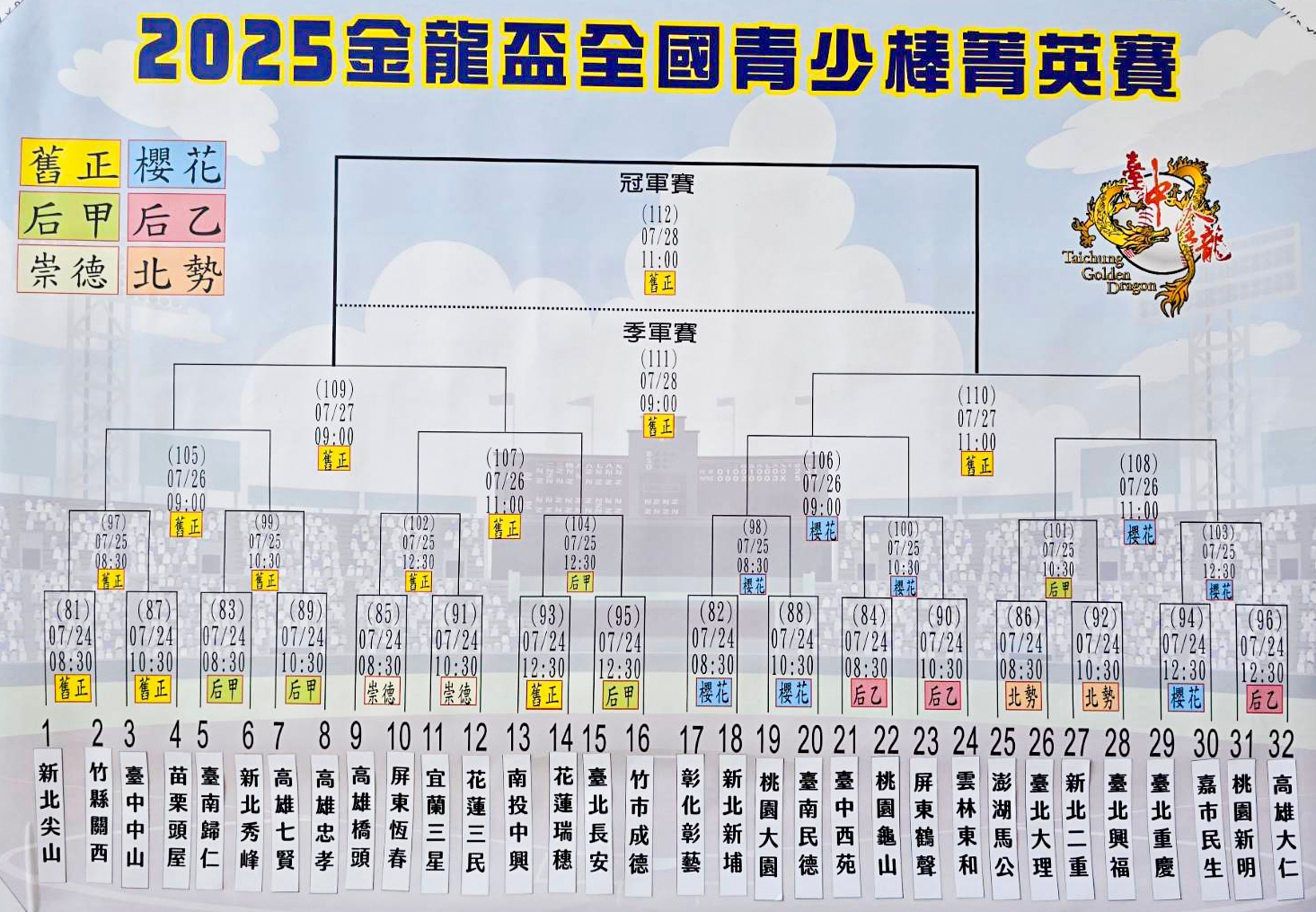 2025金龍盃全國青少棒菁英賽 抽籤結果