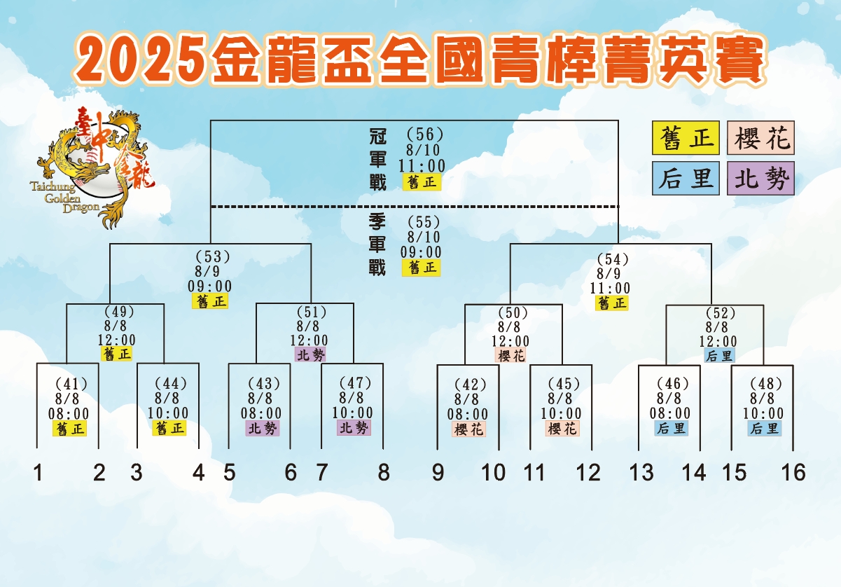 晉級隊伍請於8/7(四)下午15:00至櫻花棒球場參加決賽抽籤。