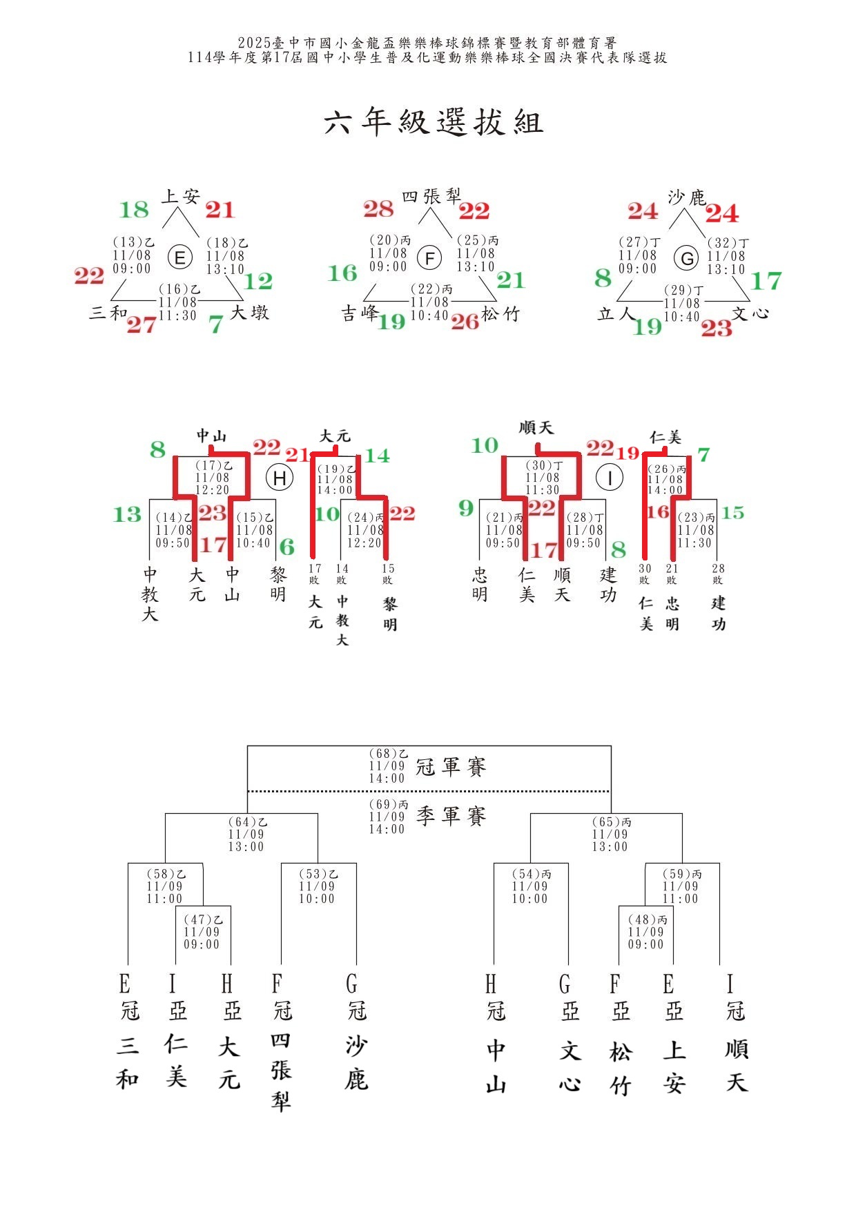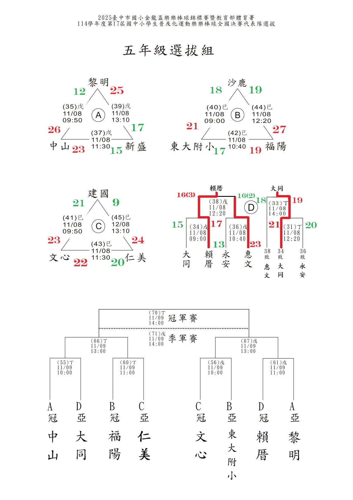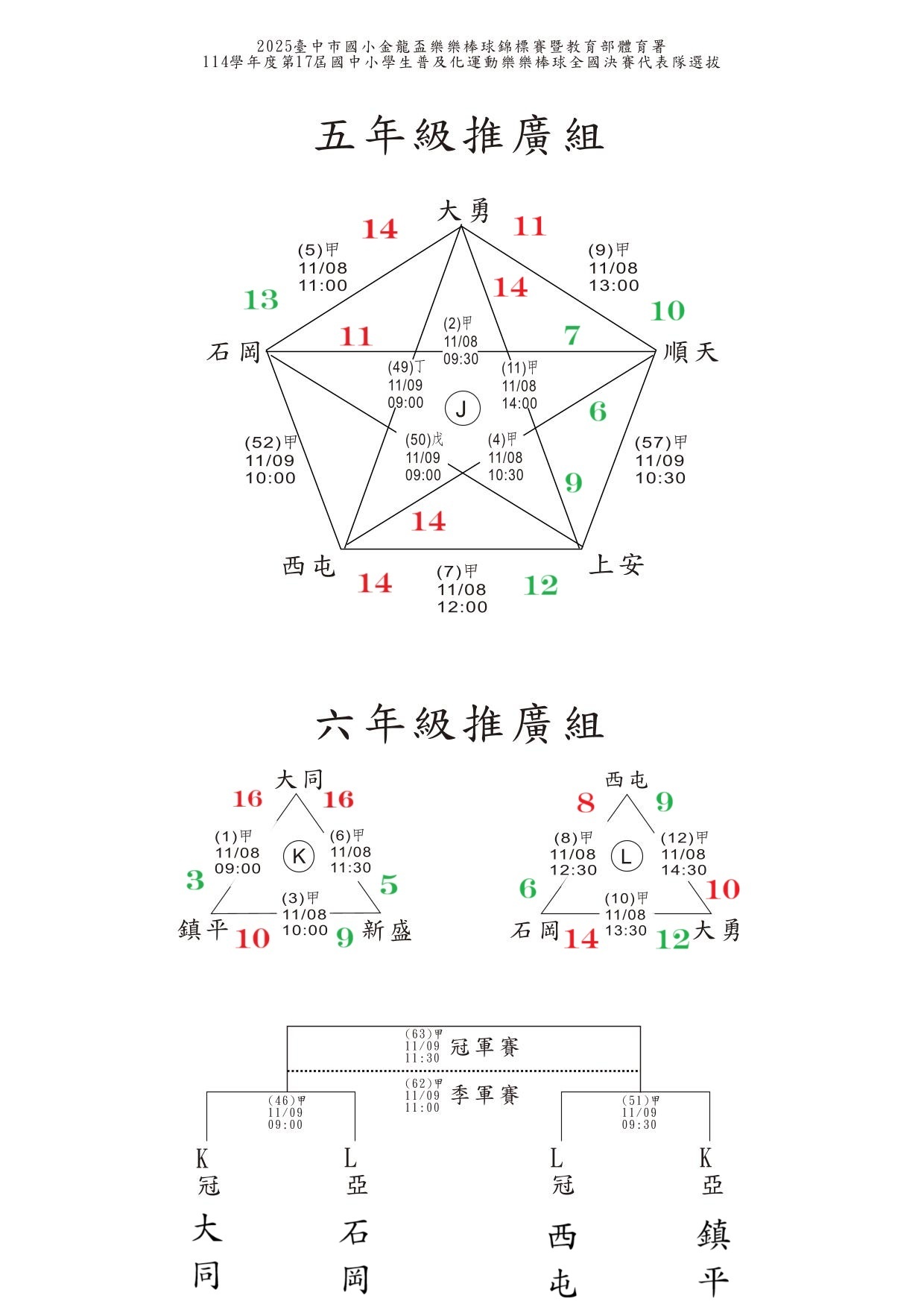 2025臺中市國小金龍盃樂樂棒球錦標賽 11/8成績